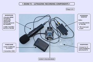 Although the Zoom F3 field recorder is not primarily designed to record ultrasound, the specification is such that the unit can actually create high quality ultrasonic recordings, when fitted with a suitable ultrasonic microphone.